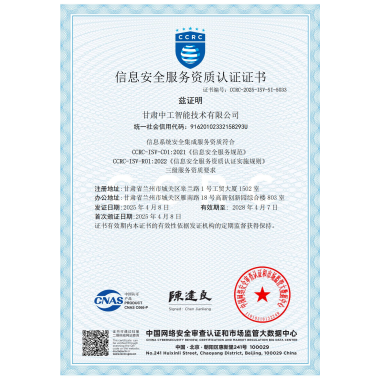 甘肅中工智能技術(shù)有限公司成立于2015年03月25日,注冊(cè)地位于甘肅省蘭州市城關(guān)區(qū)皋蘭路1號(hào)工貿(mào)大廈1502室。公司有研發(fā)部,商務(wù)部,財(cái)務(wù)部,業(yè)務(wù)部,工程部五個(gè)部門(mén),團(tuán)隊(duì)共計(jì)30余人,本科以上18人,高級(jí)職稱(chēng)2人。主要為企業(yè)及政府信息化建設(shè),安防工程,軟件開(kāi)發(fā),網(wǎng)絡(luò)安全項(xiàng)目提供全套技術(shù)解決方案。確保在信息化建設(shè)的道路上做到創(chuàng)新、領(lǐng)先、安全,從而提升工作時(shí)效。